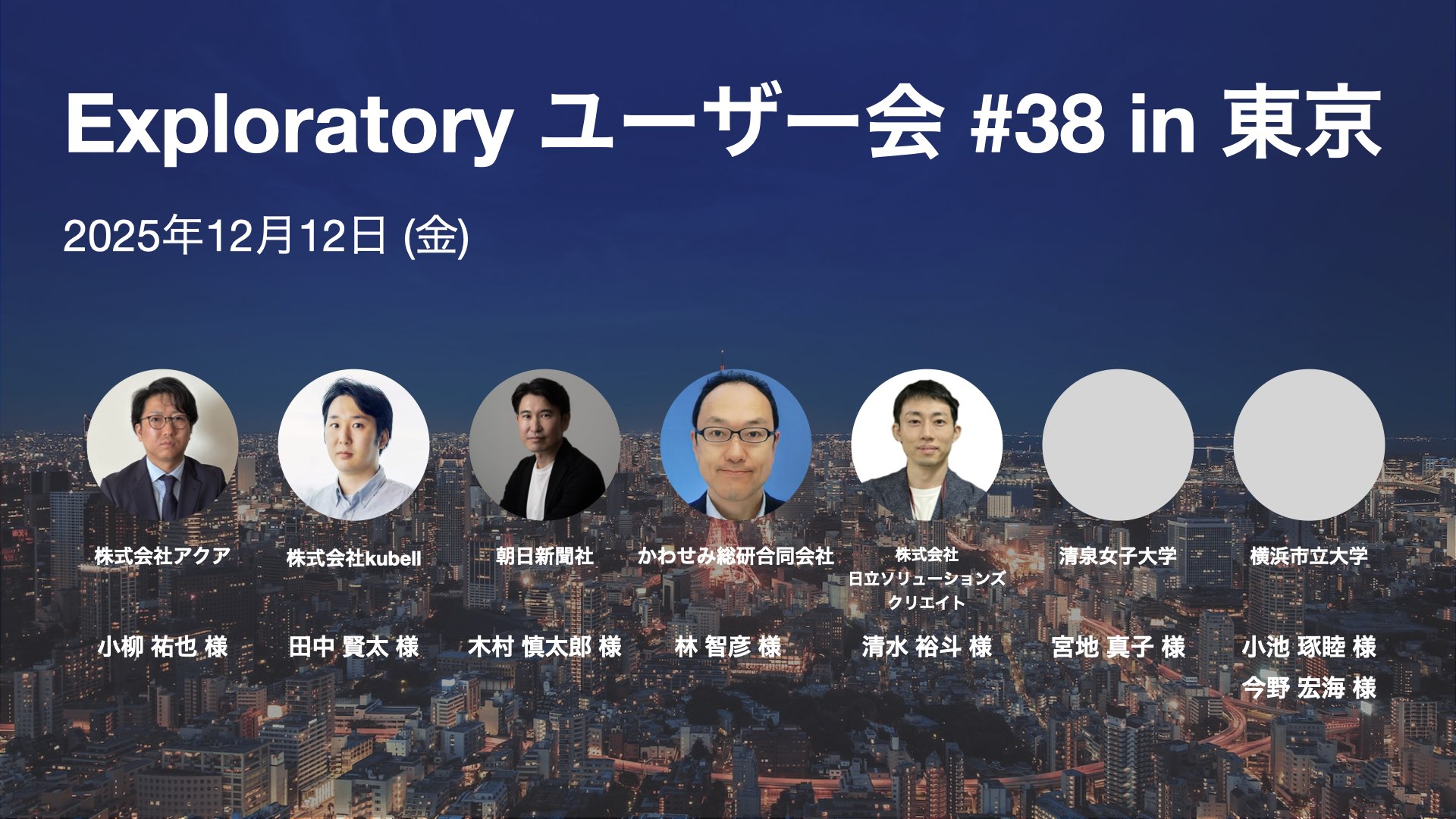 Exploratoryユーザー会では、Exploratoryのユーザー様より活用事例や分析手法などの発表をしていただいており、そちらの第38回目のご参加の受付を開始いたしました。