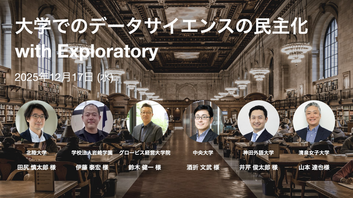 そこで、大学でExploratoryを使って授業を実施している先生方の生の声をお届けするために、カリキュラム設計や授業を実施する上での注意しているポイントなどをお話しいただく「大学でのデータサイエンスの民主化 with Exploratory」のセミナーを東京で実施することとなりました。