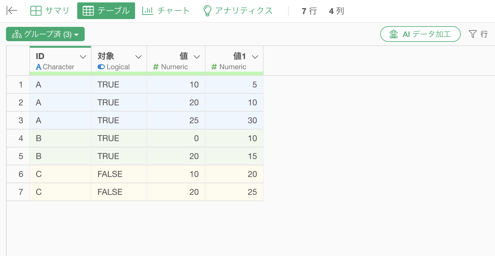 例えば、条件を元に計算をする前に「グループ化」を実行していたとします。