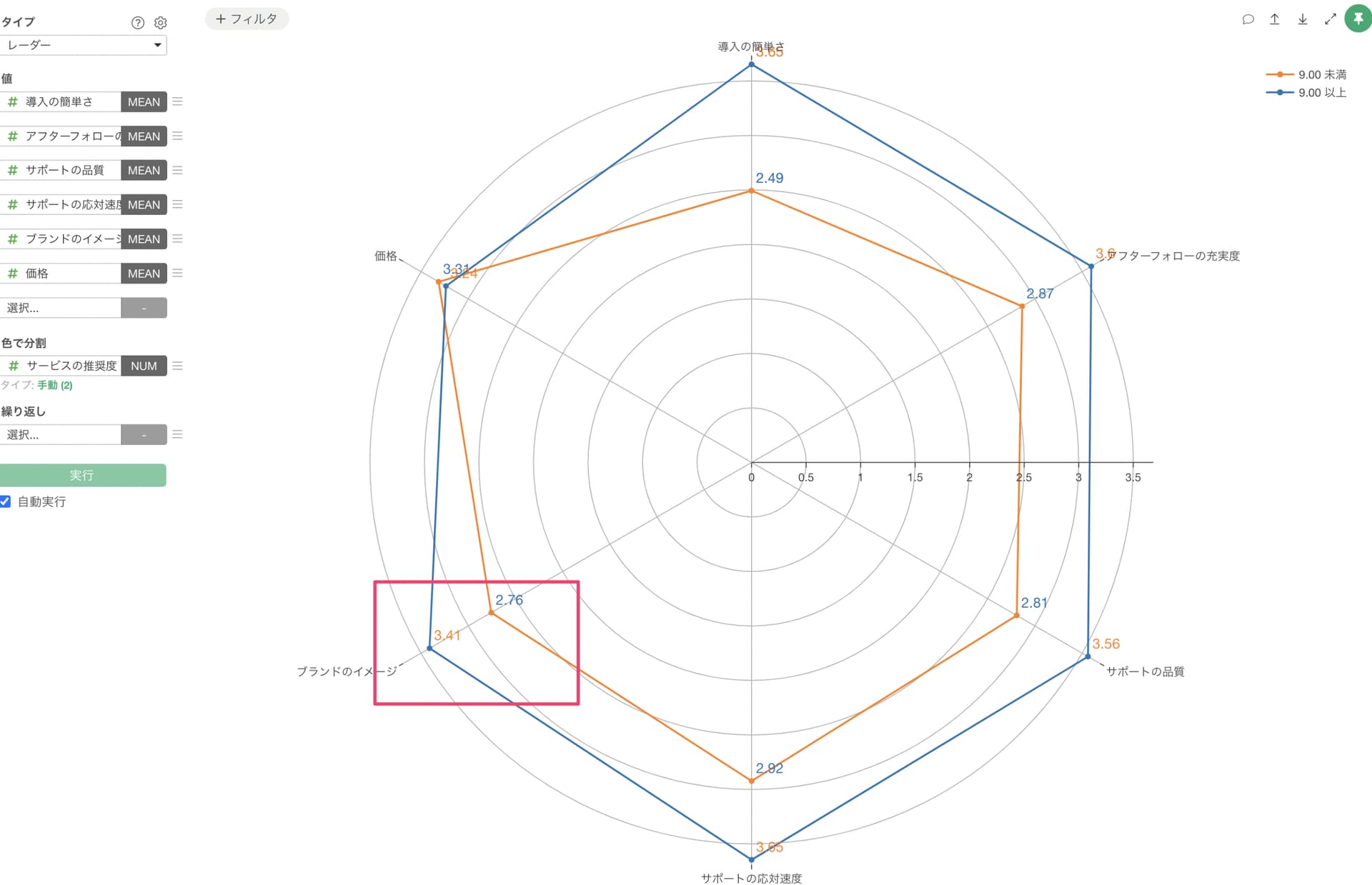 レーダーチャートで色の数値列を割り当てて条件などでカテゴリ分けした時に、値の表示の色を「チャートと同じ色」にすると色が反転してしまう問題が起きています。