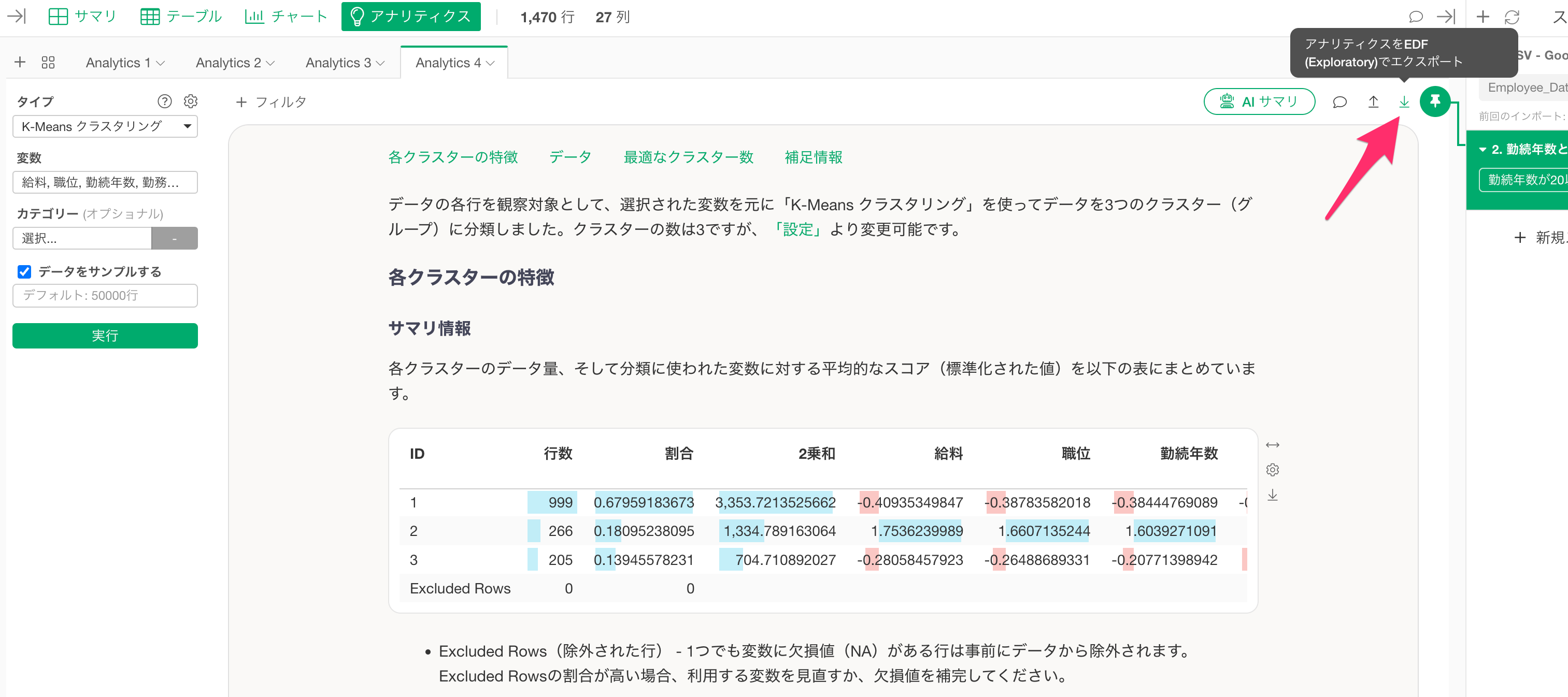 現状、アナリティクスビューで作成したレポートは、Exploratoryデスクトップからのみ、情報の再現が可能なEDFという形式でのみダウンロードが可能です。