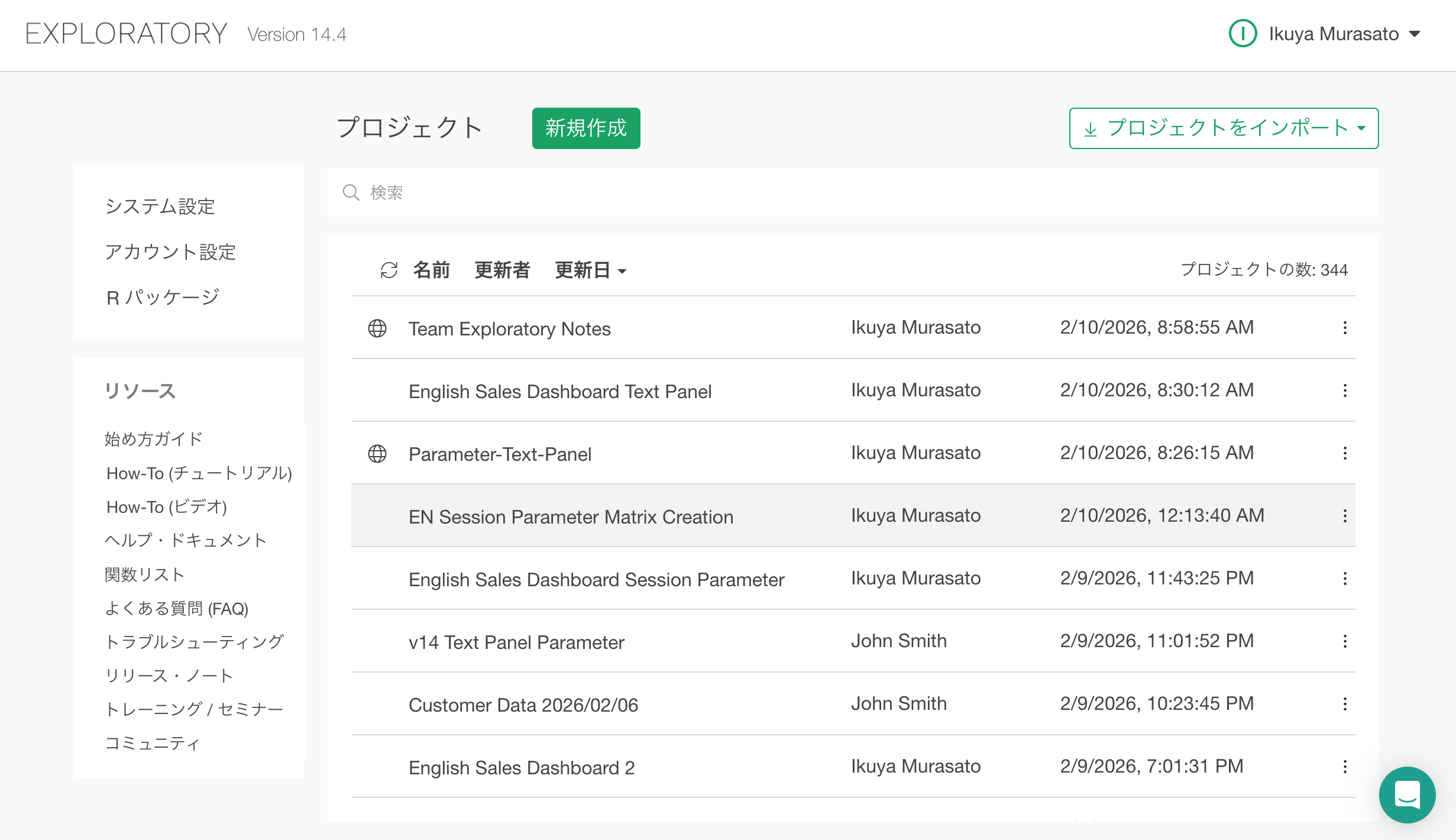 プロジェクトの「管理画面」は、Exploratoryデスクトップを起動したときに表示される「プロジェクトの一覧画面(起動した時の画面)」です。