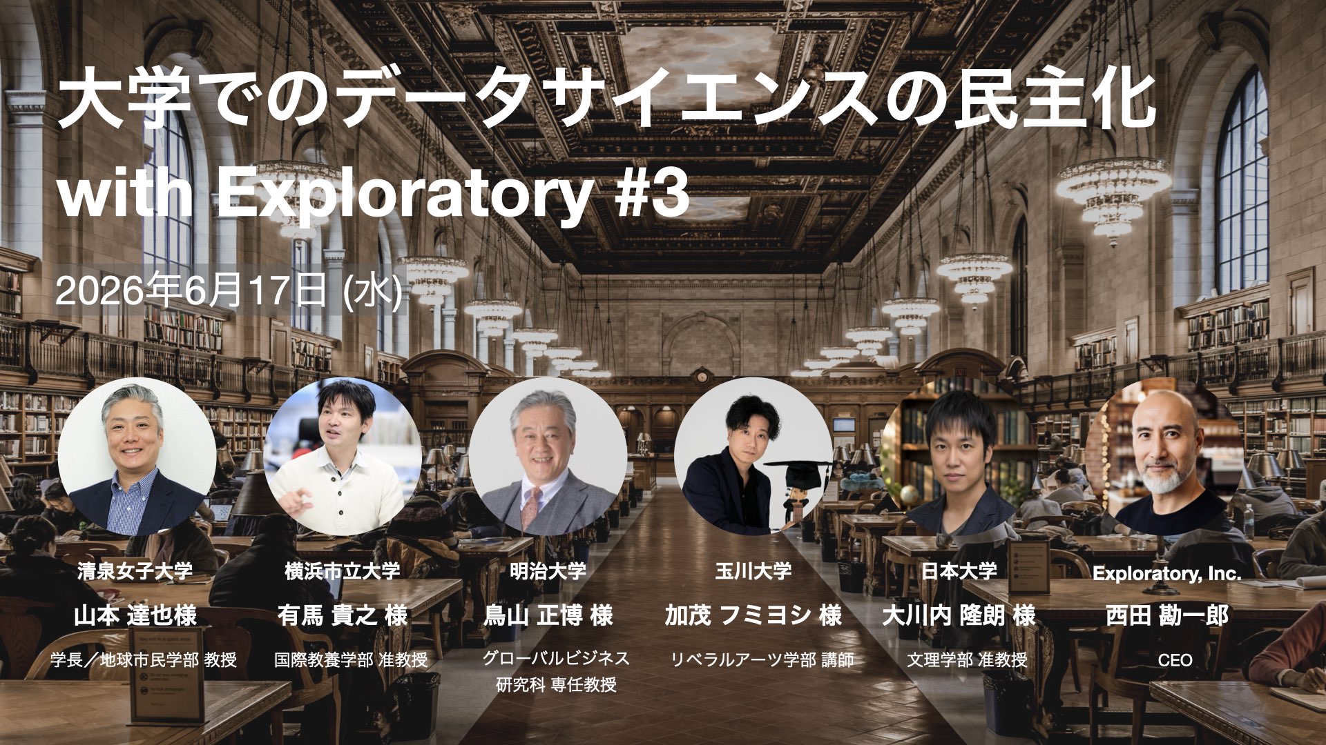 大学や教育機関でのExploratoryを使ったデータサイエンス教育について興味のある方は、ぜひご参加ください!(無料セミナーです!)